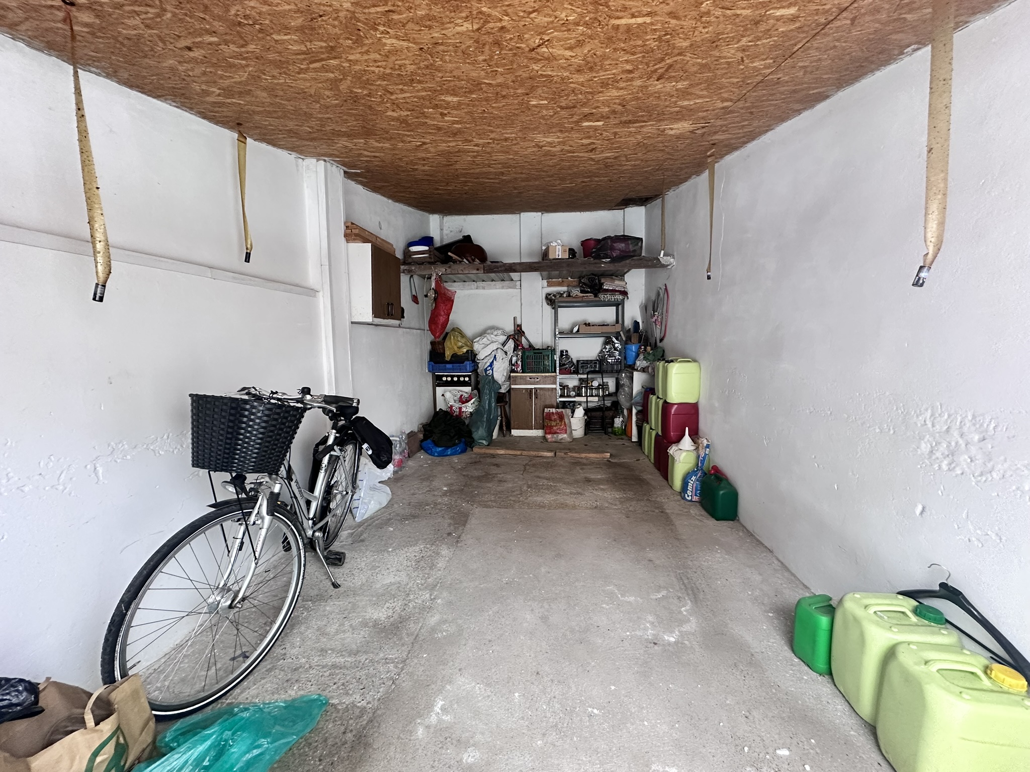 Az épület mögött egy épített garázssor található, ahol egy önálló garázs tartozik az ingatlanhoz, amelynek megvásárlása kötelező, hiszen egy helyrajzi számon szerepelnek.